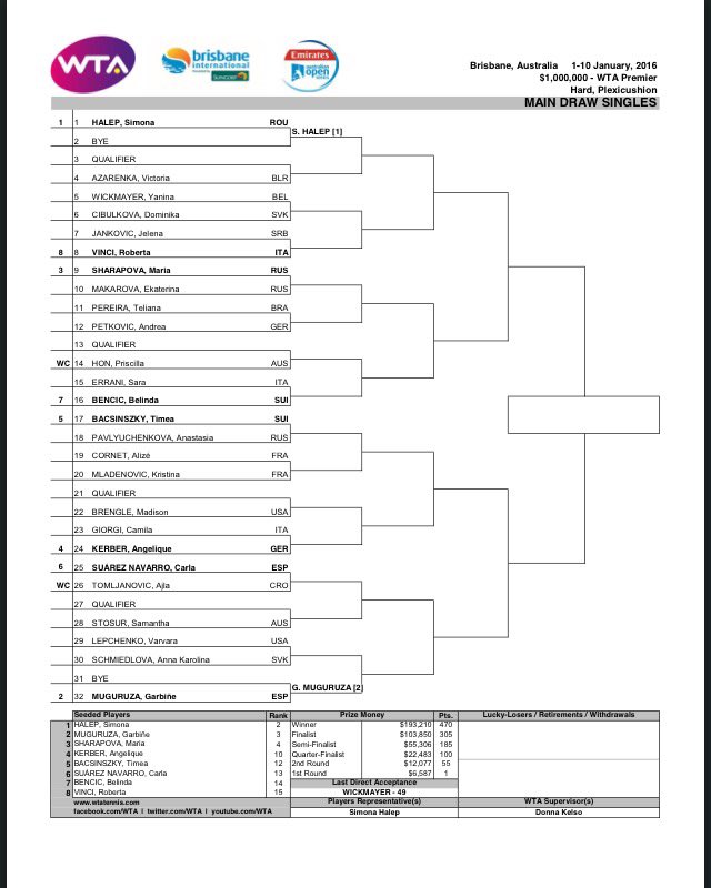 In the 2016 edition of the event there will be eight top 15 players battling for the title. Heading the field will be Simona Halep followed by Garbine Muguruza. Both players have received a first round bye.