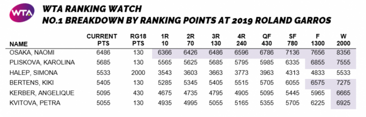 Osaka will keep her No.1 spot if she reaches the final in Paris regardless of if she wins the title or not. However, if any of her four rivals reach the title match, her position at the top will be under threat.