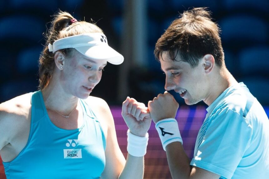 Elena Rybakina led Kazakhstan into the quarter finals at the United Cup for the first time with a 6-4 6-3 win over Maria Sakkari after Alexander Schevchenko’s upset win over Stefanos Tsitsipas.